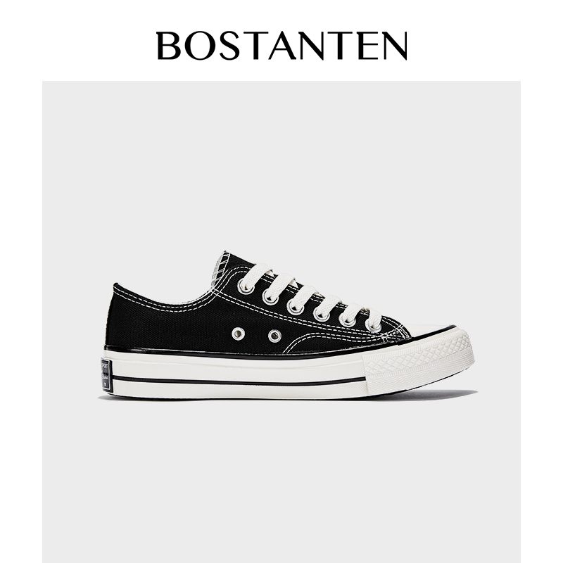 Detail 【New Arrival】BOSTANTEN Sepatu Kanvas Wanita Casual Sneakers Fashion,Sekolah,Kerja Model Low Hitam Size 35-44
