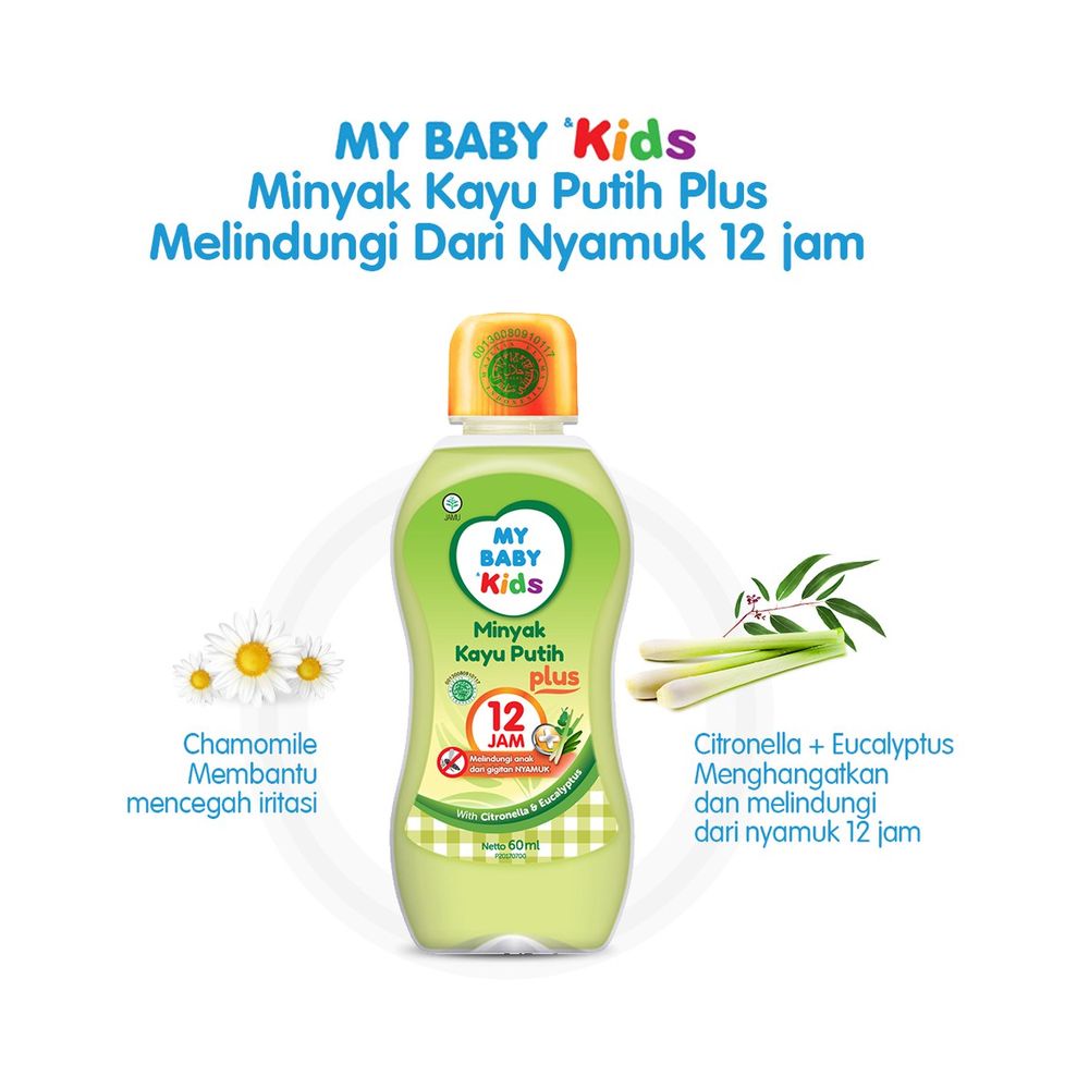 MY BABY Kids Minyak Kayu Putih Plus memberikan kehangatan lebih untuk anak yang lebih besar, serta melindungi si Kecil dari gigitan nyamuk dan serangga hingga 12 Jam. Dengan Eucalyptus, juga melindungi si Kecil dari bakteri dan virus. Selain itu, minyak kayu putih plus ini juga dapat membantu meredakan perut kembung dan masuk angin. Dengan tekstur yang tidak akan lengket di kulit karena formulanya yang cepat menyerap di kulit. MY BABY Kids Minyak Kayu Putih Plus juga memberikan aroma yang menenangkan.