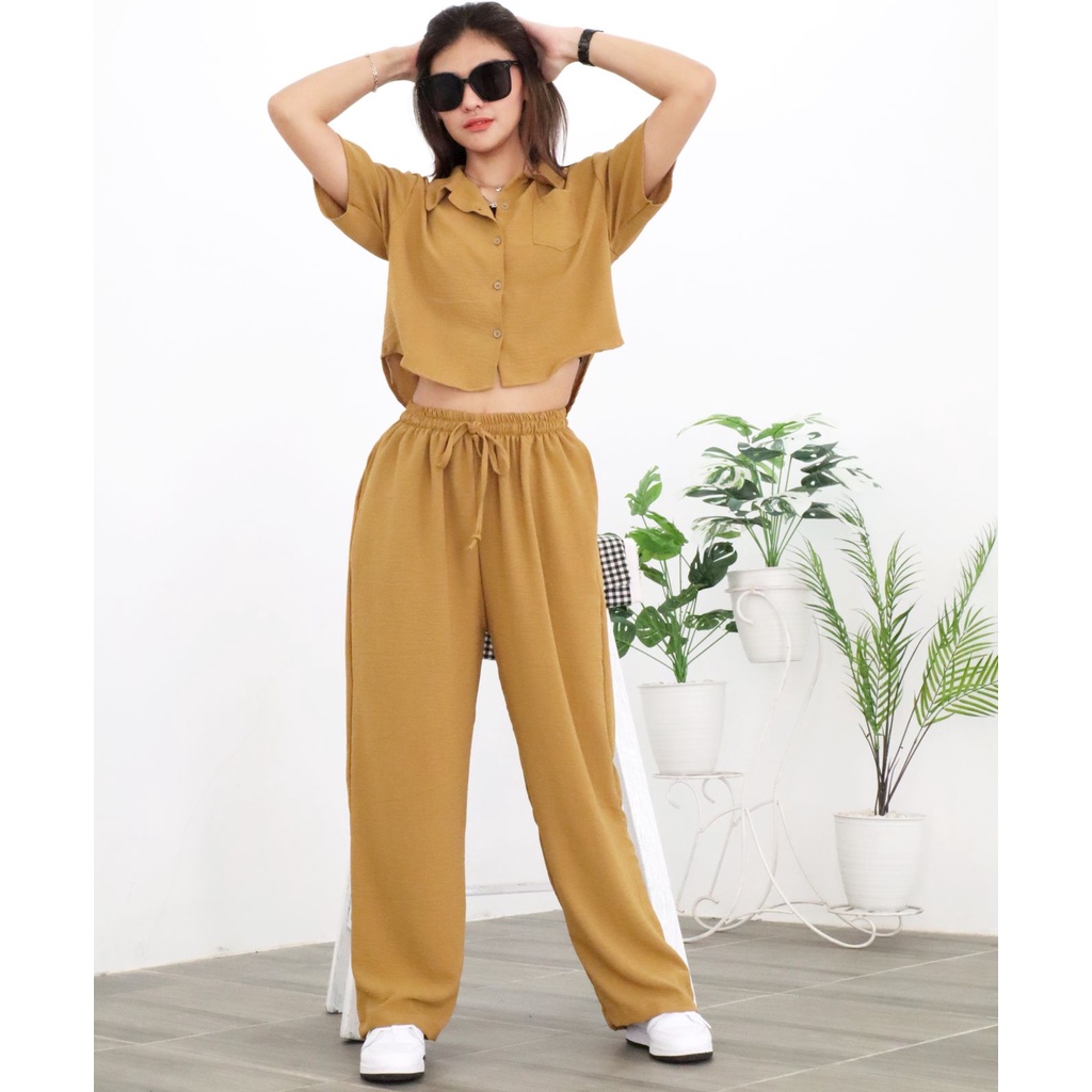 Kemeja Crop Top Material Cringkle All Size Fit to L
