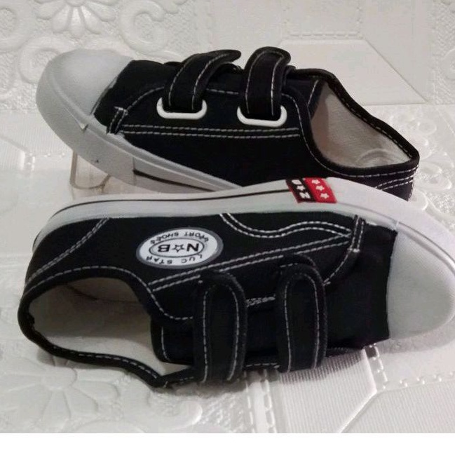 Detail New Basket Sepatu Sekolah Anak Laki Perempuan Model Tempel Size 28 - 38