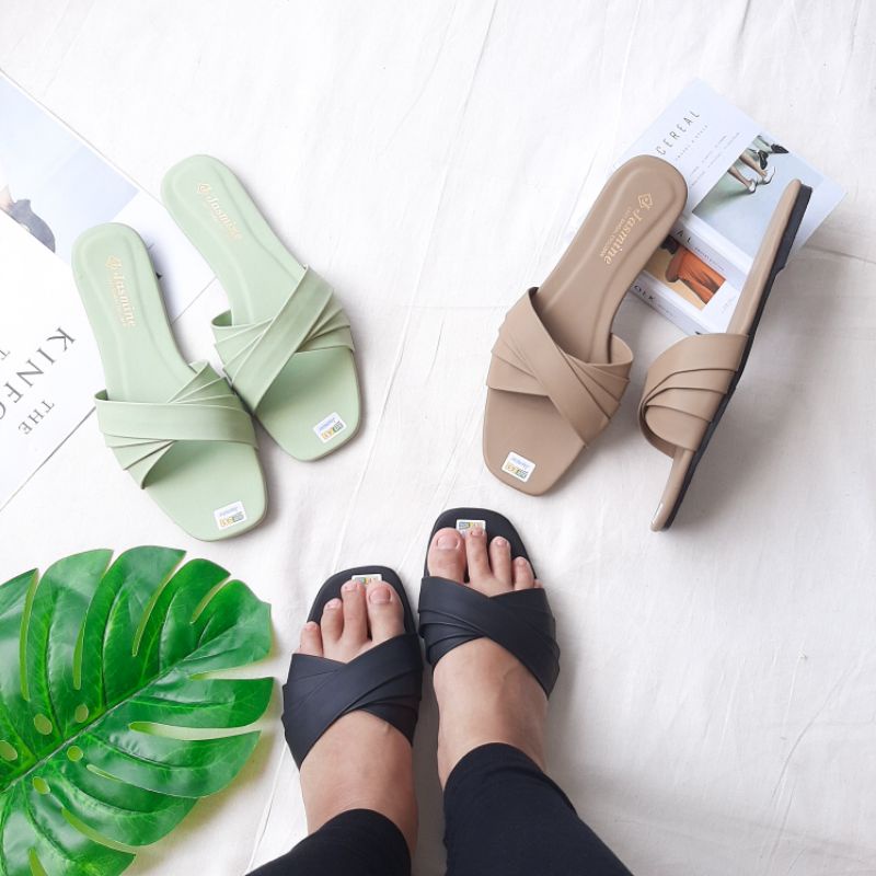 Detail NEW BIG SIZE UKURAN IMPORT JENNIE flat Selop kipas Cewek JASMINE JUMBO (H722)
