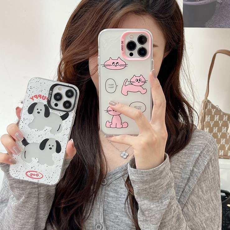 Handphone & Aksesoris > Casing & Skin > Casing & Skin Handphone > New Black & White Puppy Skin Feel Soft Case HP iP iPhone 12 13 14 Pro Max 11 Woman Girl FTD Casing Apple