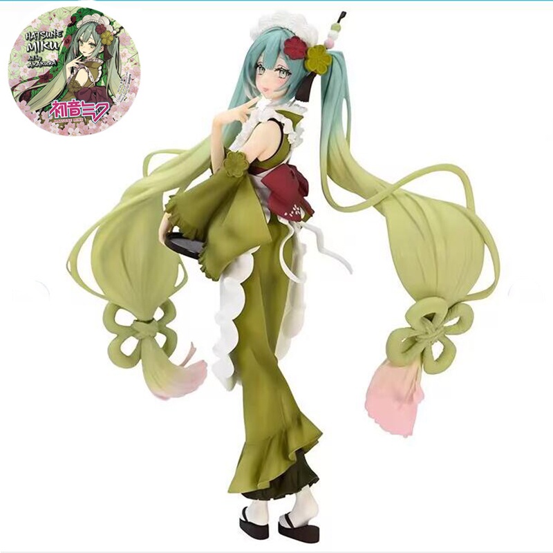 Detail New Creative VOCALOID Hatsune Miku Matcha Parfait Heterochromatic Ver. Mainan Model Figure Anime Jepang