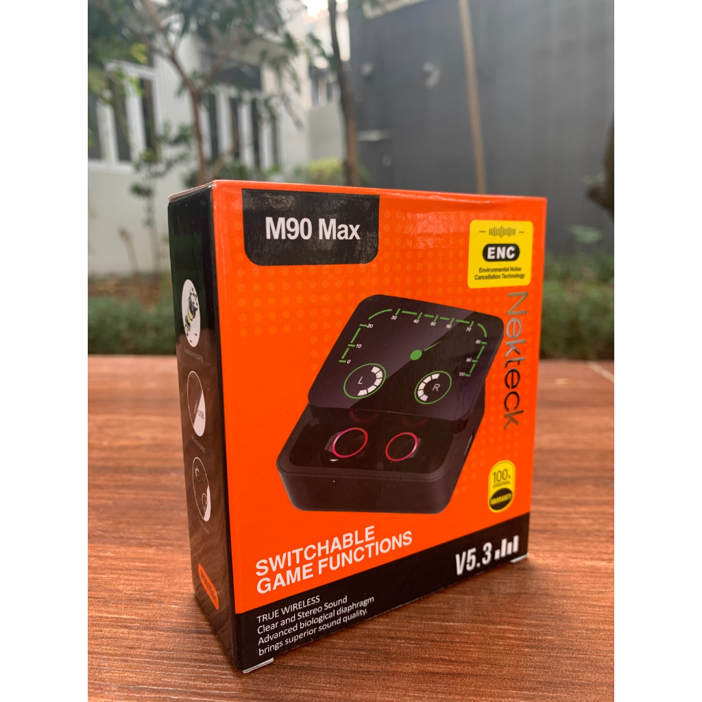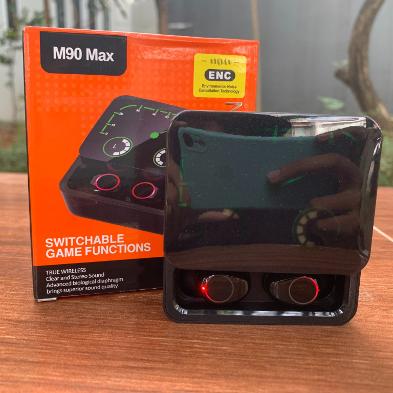 Spesifikasi : - Model : M90 Max - Wireless Version : 5.3 - Effective Distance : 10-15M - Frequency : 100HZ-10KHZ - Case Battery Capacity : 1200mAh - Earbud Battery Capacity : 40mAh - Music Time : 3 Hours - Talk Time : 3 Hours - Charging Time : 1-2 Hours