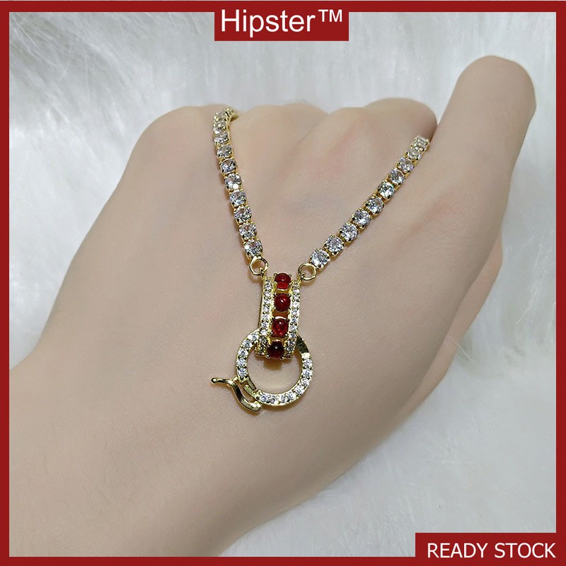 Detail New Fashion Luxury Full Diamond Natural Red Crystal Buckle Pendant Necklace