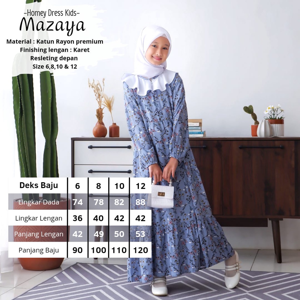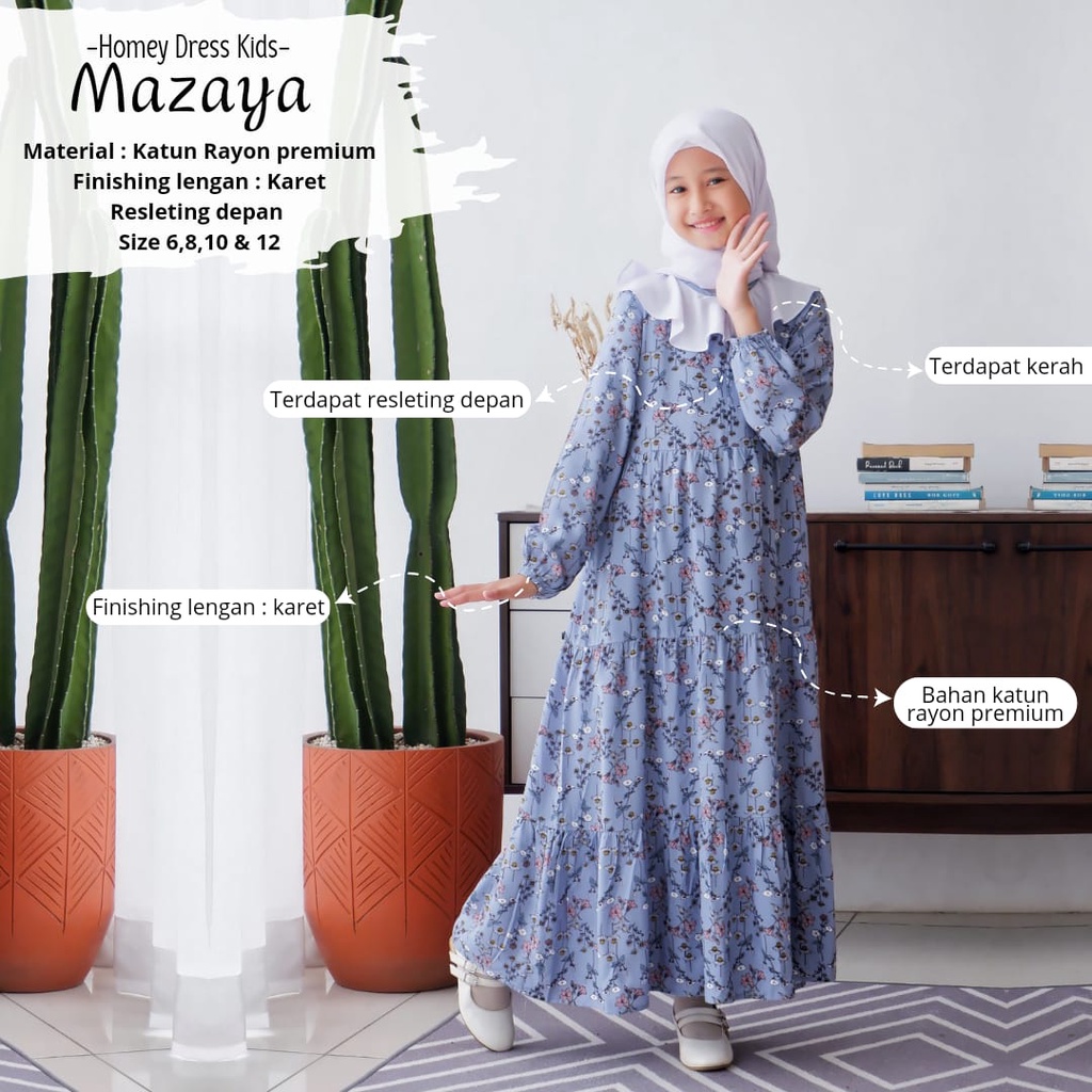 New-Gamis Anak/Homey Dress Anak-Homey Dress MAZAYA-Bahan Katun Rayon Premium-Busana Muslim Anak murah