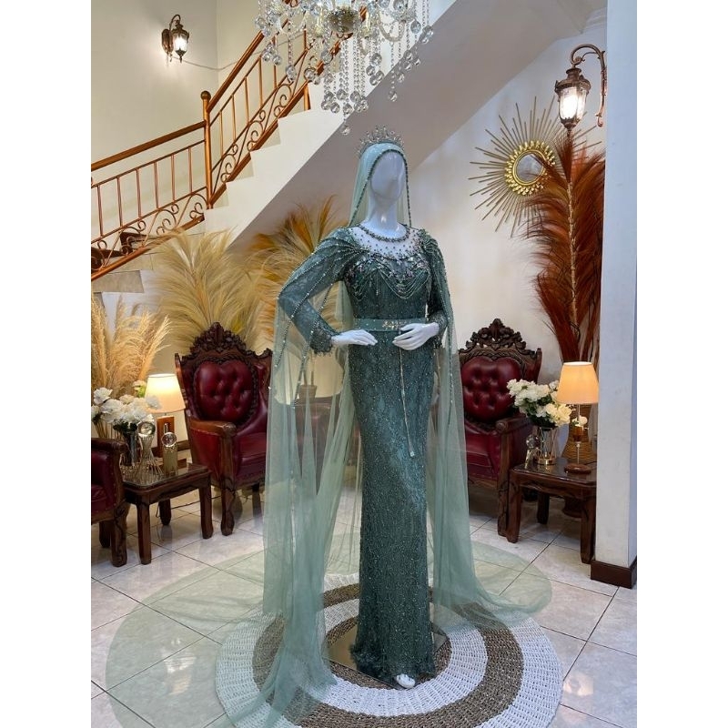 SPESIFIKASI Dress/Kby ✍️ BAHAN TERBUAT CHANTYLI PREMIUN DAN ADA JUGA BAHAN SEQUIN SPANGLE ADA JUGA