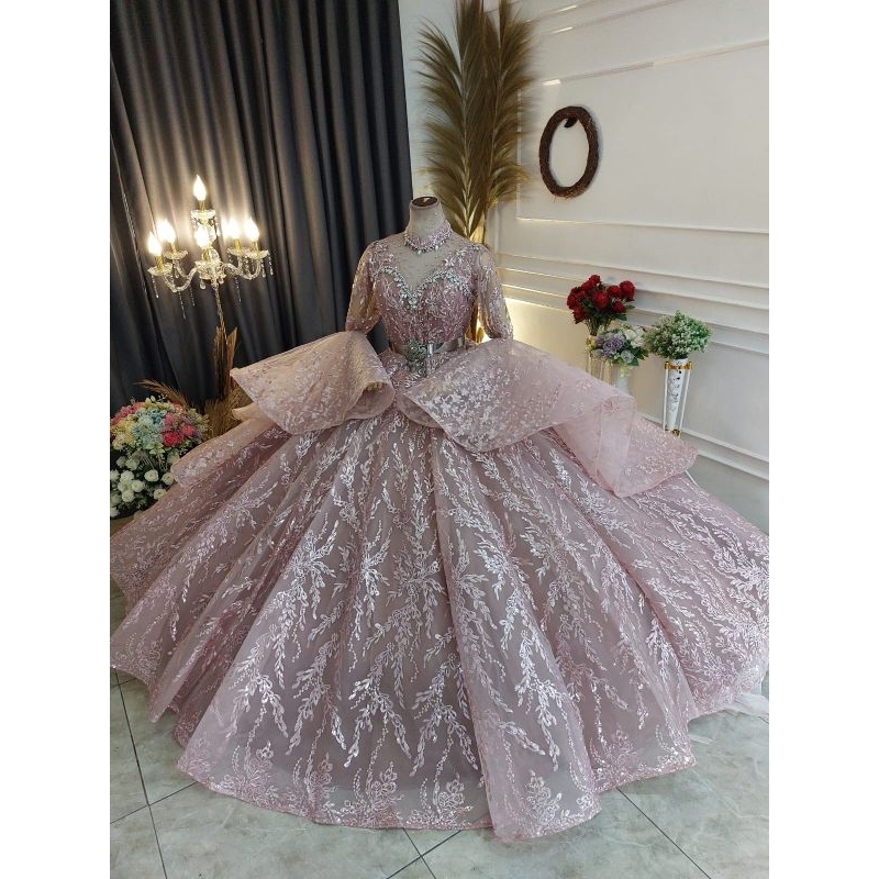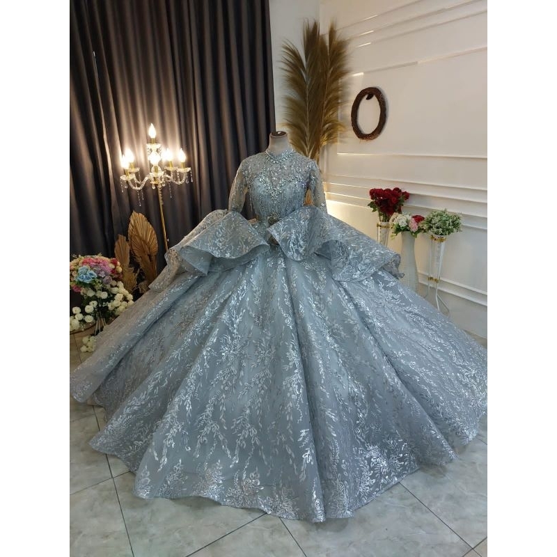 Detail NEW GAUN PENGANTIN CRINOLIN PREMIUM// GAUN BELIMBING SEQUIN/BALL GAUN/GAUN TERBARU/PERLENGKAPAN PESTA/BAJU NIKAH/GAUN MODERN