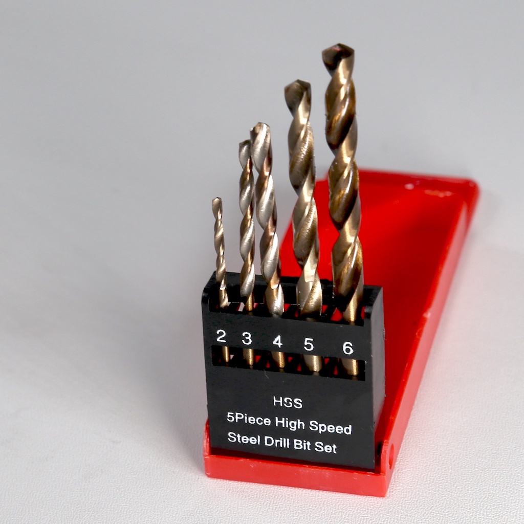 Brand : YUKIDO MATA BOR BESI SET Ukuran : 2 mm - 3 mm - 4 mm - 5 mm - 6 mm Digunakan untuk pengeboran besi, kayu, aluminium.