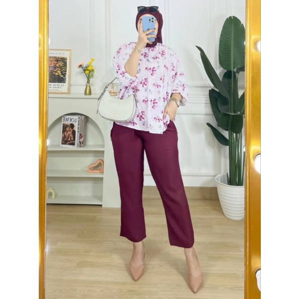 ✨ ATASAN RAYON DIAMOND ALLSIZE LD 110 pj depan 65cm blkng 75cm kerah V lengan karet ✨ CELANA PJ 95cm lebr paha 70cm karet muter