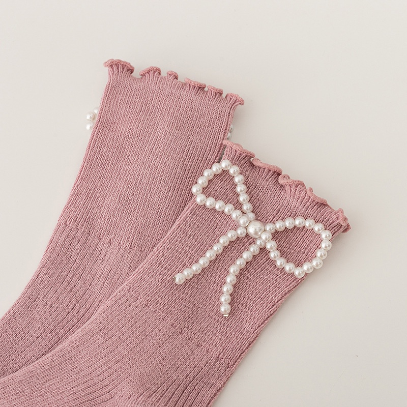 Detail NEW Kaos kaki bayi/anak perempuan motif pita dan mutiara