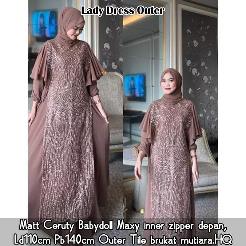[ New ] Lady Dress / One Set Ineer + Outer Kekinian / Set Gamis Muslimah Wanita Matt Ceruty Mix Brukat / GOM