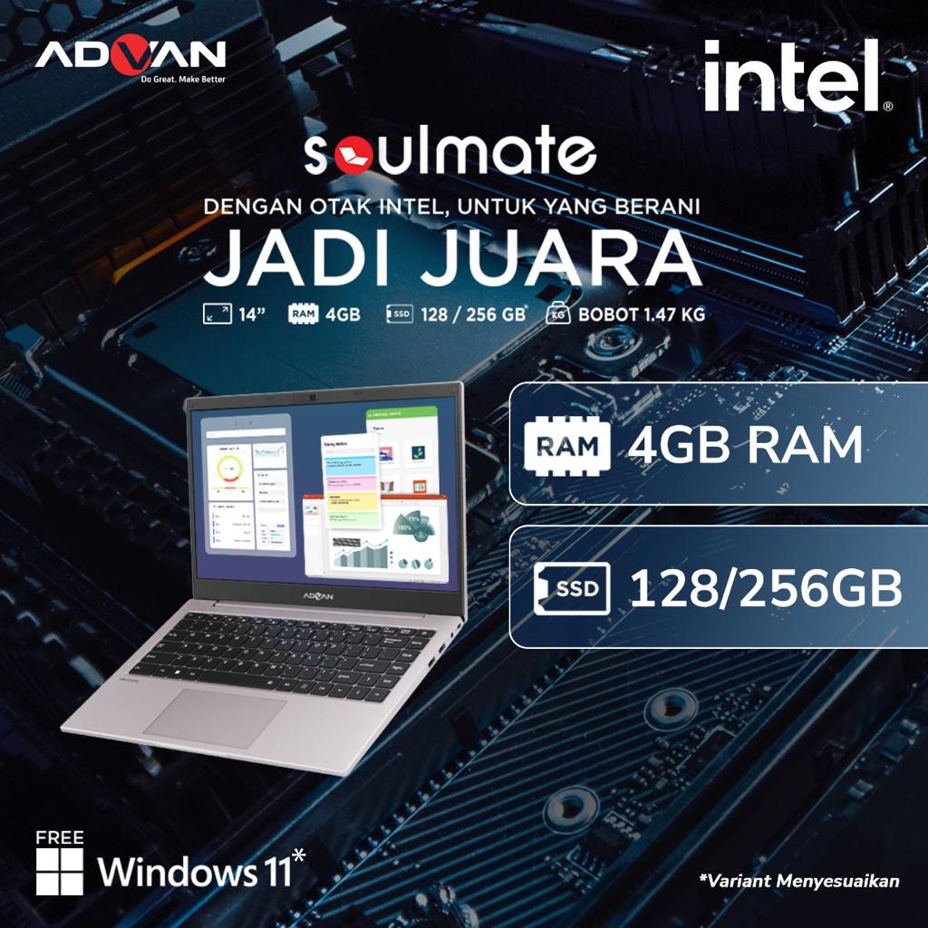 Laptop MURAH ADVAN Soulmate Celeron N4020 4GB 128GB 256GB 14" W11