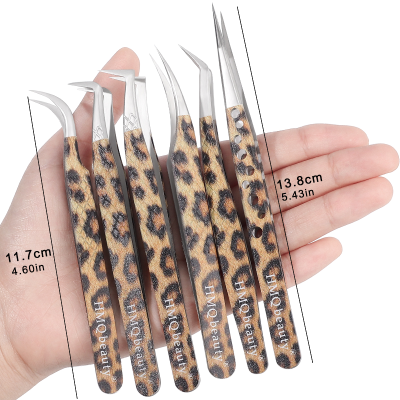 New Leopard Lash Pinset Stainless Steel Superhard Pinset Dengan Tip Serat Presisi Tinggi Anti-Statis Klip Ekstensi Bulu Mata