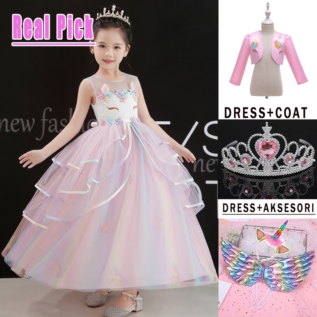 NEW Long Dress Unicorn Anak Impor/ Gaun Dan Jacket Unicorn Ulang Tahun Tutu Anak Unicorn Panjang