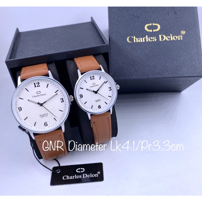 Detail NEW MODEL,,JAM TANGAN COUPLE CHARLES DELON KULIT ORIGINAL CASE SILVER