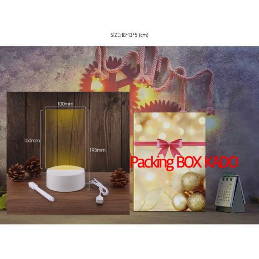 PAKET LED • 1 acrylic • 1 stand led • 1 spidol putih bisa di hapus • 1 packing box