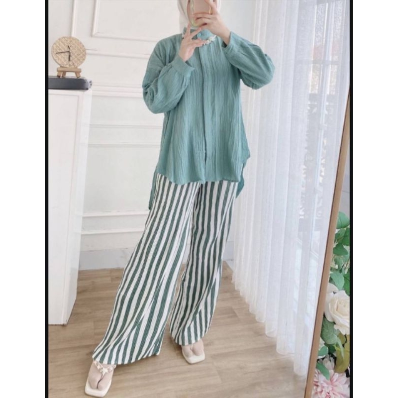 ✨ READY SET SALUR ✨ ✨ LADYCURHS ALLSIZE LD 110 pj bju dpn -+ 70cm blkng -+ 80cm full kncing ✨ Celana salur crincel airflow premium pj 95cm lebr paha -+ 70cm full karet