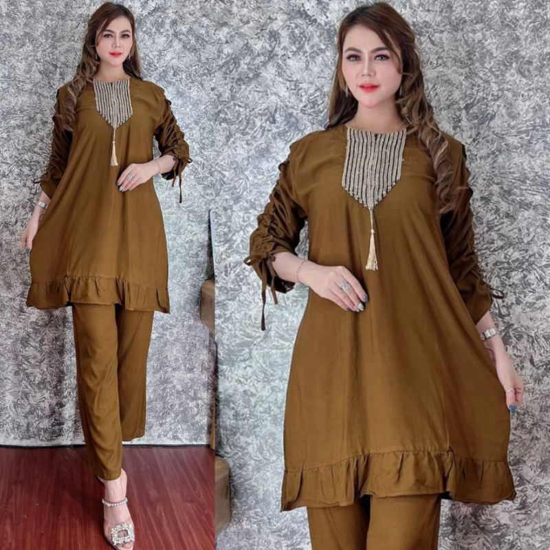 TERBARU SETELAN CELANA PANJANG , LENGAN PANJANG DENGAN MODEL ATASAN TUNIK, COCOK UNTUK BERBAGAI ACARA IBU MUDA MAUPUN REMAJA PUTERI,