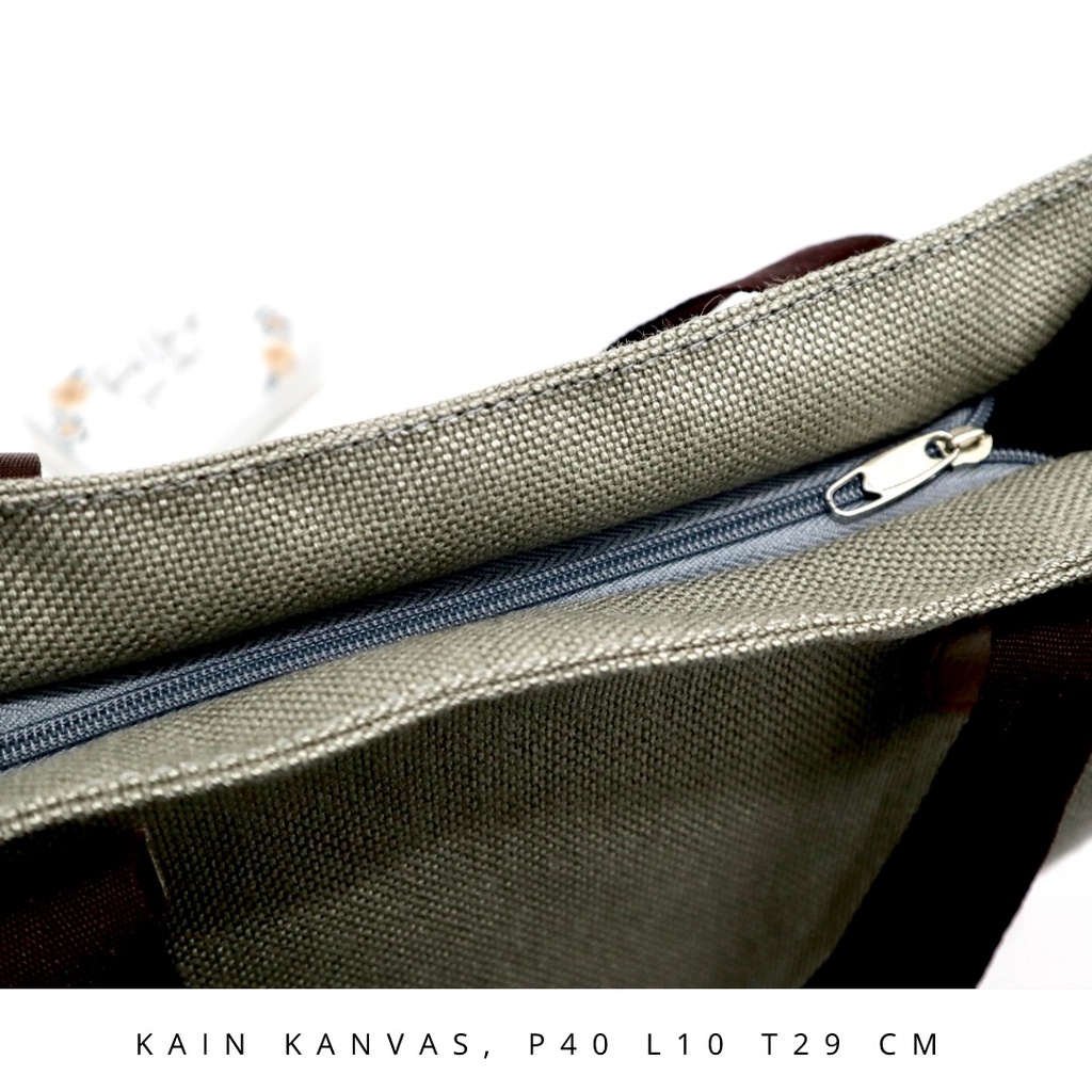 Bahan : Kanvas Motif Ukuran Bag : Tinggi 32 x panjang 30 x lebar 11 cm Berat Bersih : 200 g Tali : Kulit Sintetis Color / Motif : Buanyak Banget Ada Resletingnya yaa
