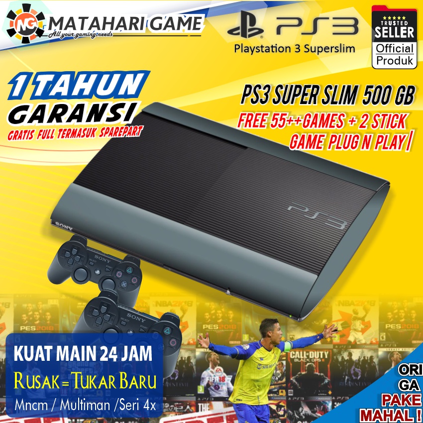 Detail New PS3 500GB SuperSlim CFW Sony Asli Full Games + 2 Stik / GRATIS 1 Tahun Garansi