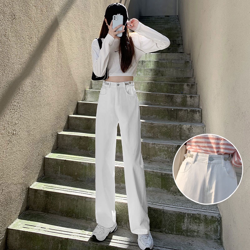 Detail new putih high waist kulot terbaru jeans panjang wanita kekinian cewek