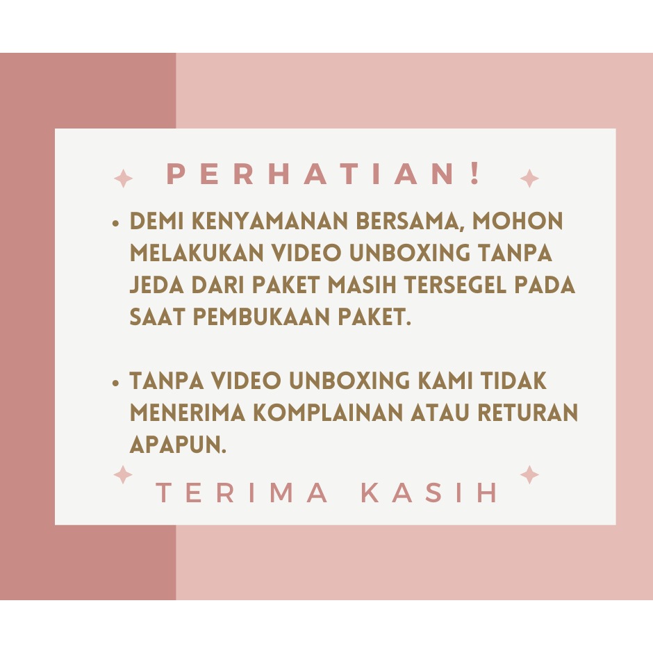 ๐ PERATURAN TOKO: ๐ฅ Mohon merekam video Unboxing saat membuka paket โ Komplainan wajib menyertakan video UNBOXING ๐ฏ Silahkan pastikan kembali warna, model dan varian sebelum checkout, tidak menerima Chating untuk ganti Nama, Alamat, Model, Warna dan Size ๐ซ Pesanan yang sudah diproses tidak bisa di CANCEL ๐ Mohon untuk isi data Nama, Alamat, No Telp yang lengkap supaya tidak terjadi kesalahan pengiriman ๐ป Komplainan mengenai pengiriman harap langsung menghubungi pihak berwajib
