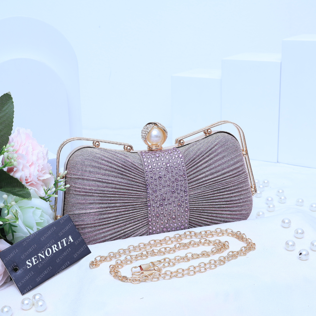 Spesifikasi - Ukuran : P20 x L3 x T10cm - Bahan Luar :Gliter - Bahan dalam : satien - Ada box & rantai panjang