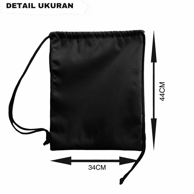 Untuk Spesifikasi Tas Serut kami Bahan Tas : Cordura Black Bahan Tali : katun Super Kuat Sablon : Print Ukuran : 34cm x 44cm Bahan anti air, Jahitan rapi & Tali yang kuat adalah keunggulan dari toko kami. Selain itu, sebelum pengiriman barang kami cek Kembali guna memastikan barang terkirim sesuai dan layak pakai (tidak ada cacat produksi). Tas Serut ini sangat ringan, jadi buat Kakak semua yang mau pesan banyak juga bisa, 1 KG muat 10pcs.