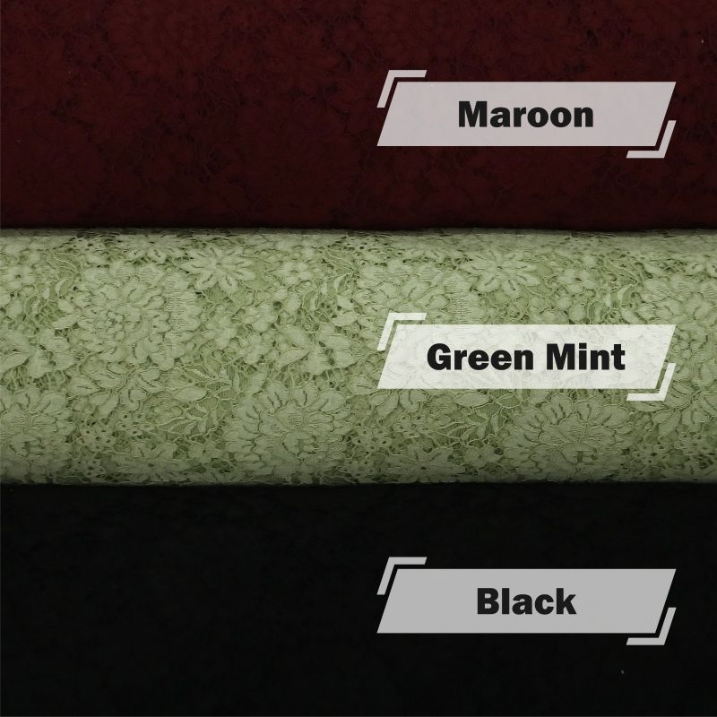🔻 HARGA : 69.000/M . {34.500/0.5m} 🔻 BERAT : 1 Kg ~ 4.5m 🔻 SERI : 11 Varian Warna 🔻 BAHAN : Cotton Lace Premium