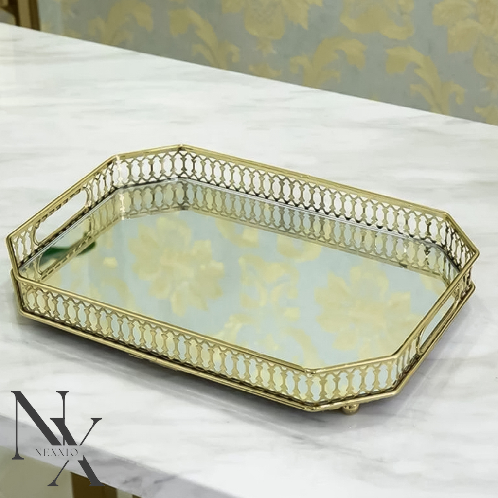 NEXXIO Nampan Dekorasi Home Decoration exclusive Gold / Nampan Gold Kaca / Nampan minuman Lebaran.