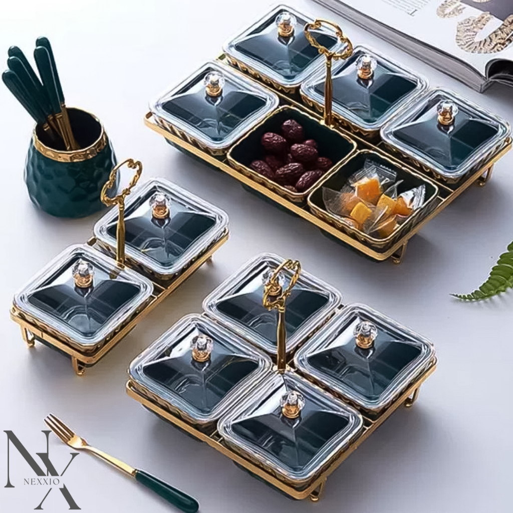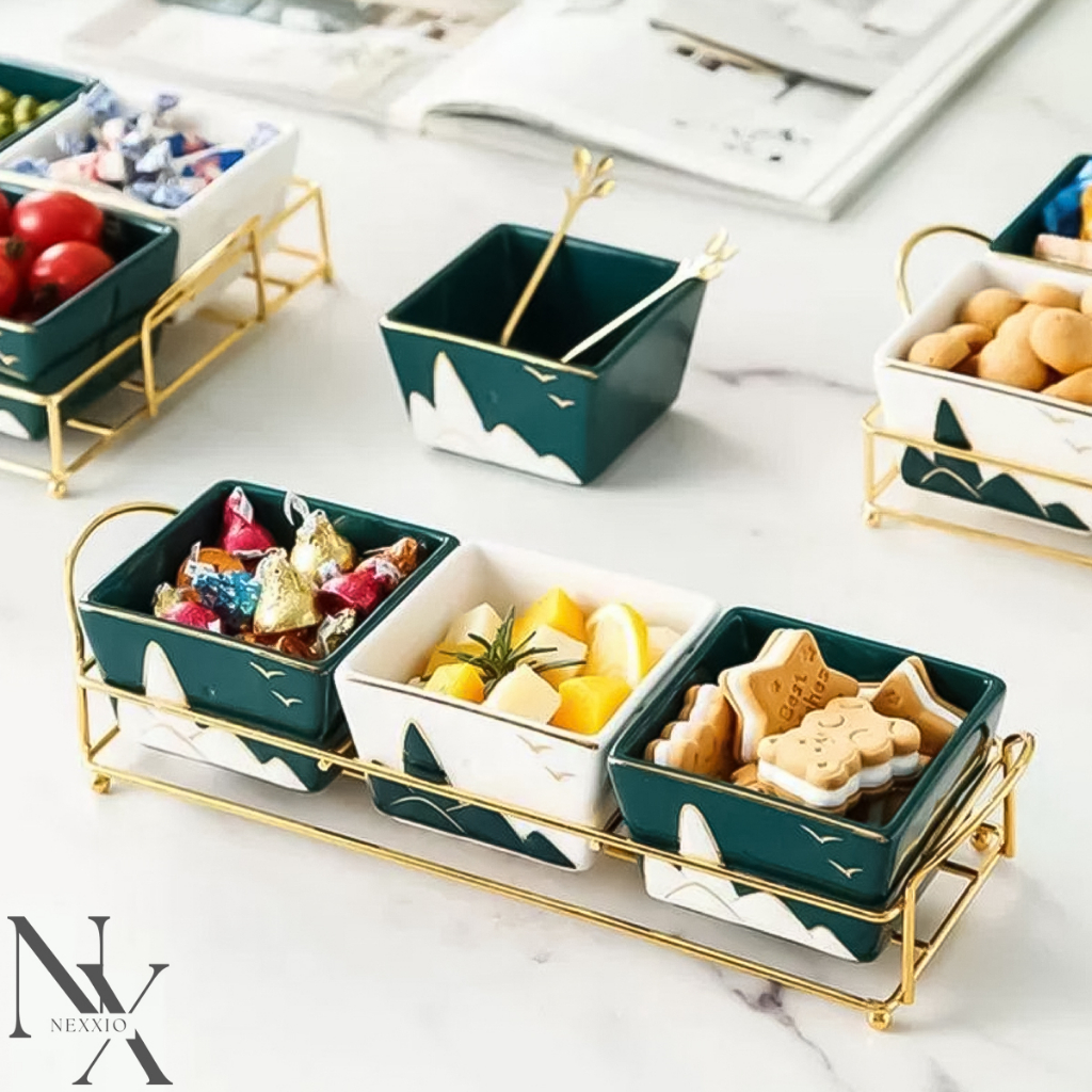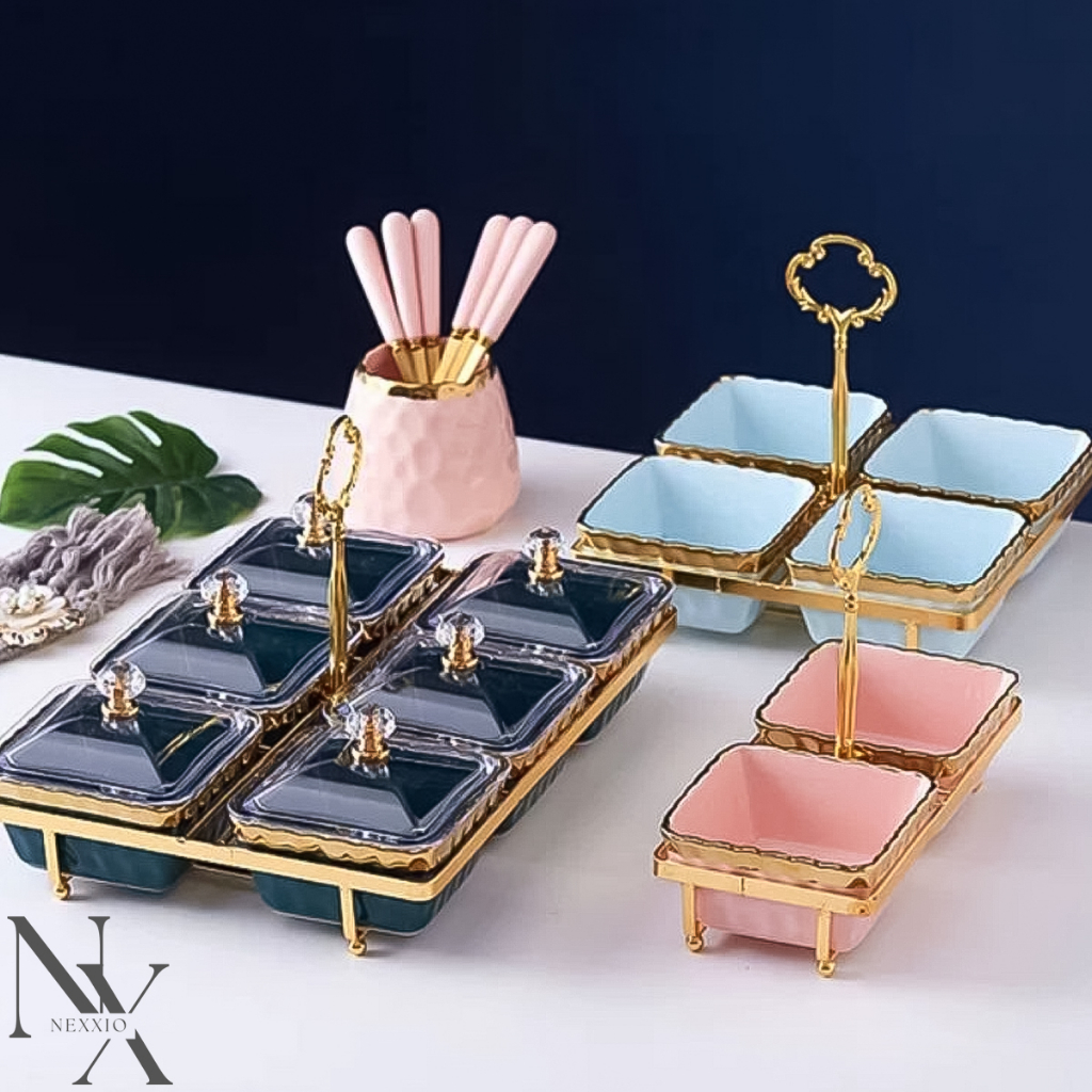 Snack Tray Keramik Tempat penyimpanan snack elegant dan super cantik. 3 variasi ya sudah include rak gold. ukuran nya ada di setiap variasi foto