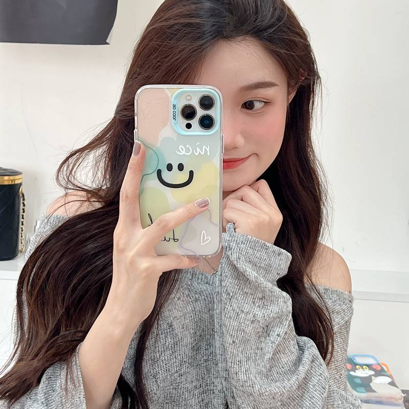 🔔【Ready Stock】 Nice Colorful Gradient Smile Skin Feel Soft Case HP iP iPhone 12 13 14 Pro Max 11 Girl Woman FTD Casing Apple