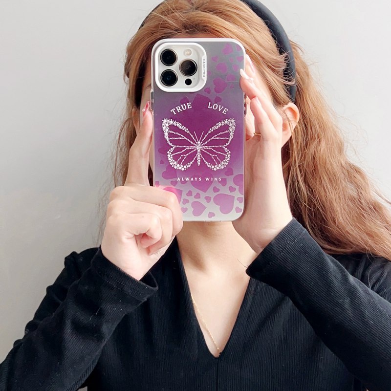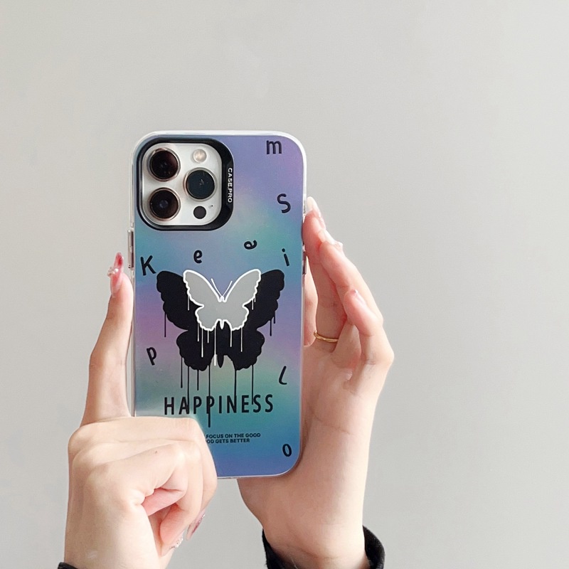 🔔【Ready Stock】 Nice Happiness Butterfly Soft Case HP iP iPhone 14 13 12 Pro Max 11 Matte Silver Woman Girl FTD Casing Apple