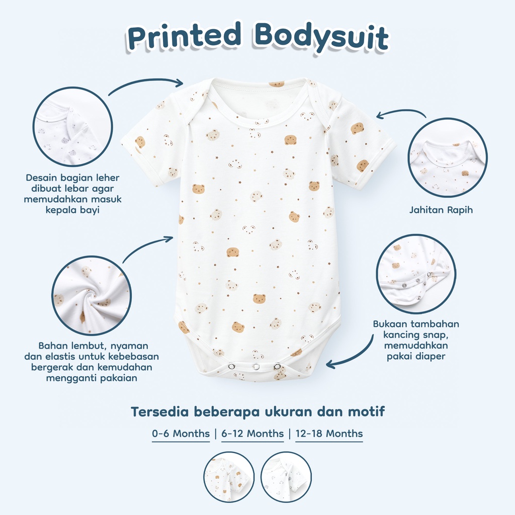 Kami pastikan printed bodysuit ini memberikan kenyamanan pada sang buah hati sepanjang tahun di segala musim.