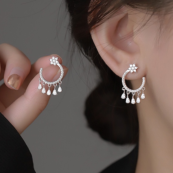Detail Niche Elegan Prancis Berlian Imitasi Bintang Rumbai Temperamen Anting Fashion Sederhana