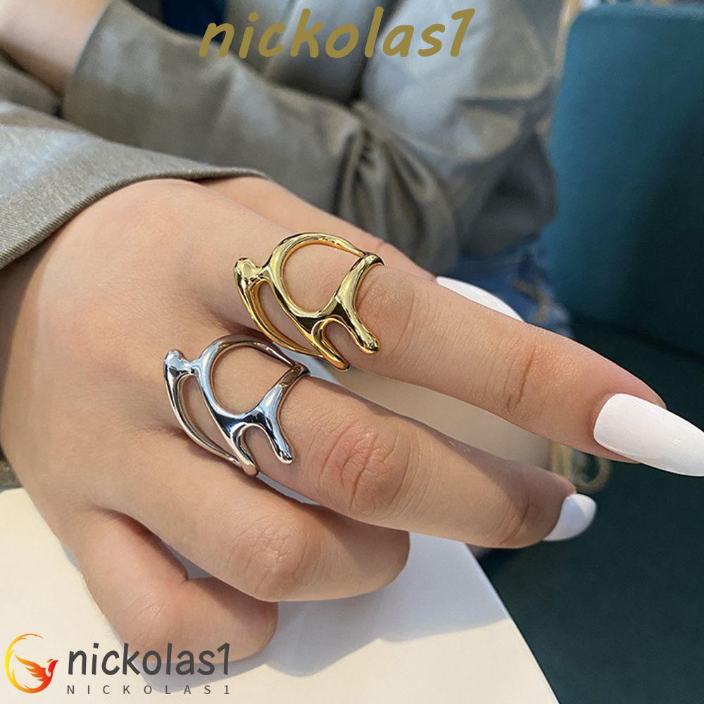 Nickolas1 Cincin Geometris Unik Vintage Tidak Teratur Berongga Cabang Kepribadian Plat Perak Hadiah Hari Valentine Punk Ring