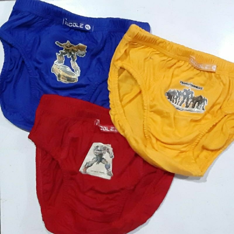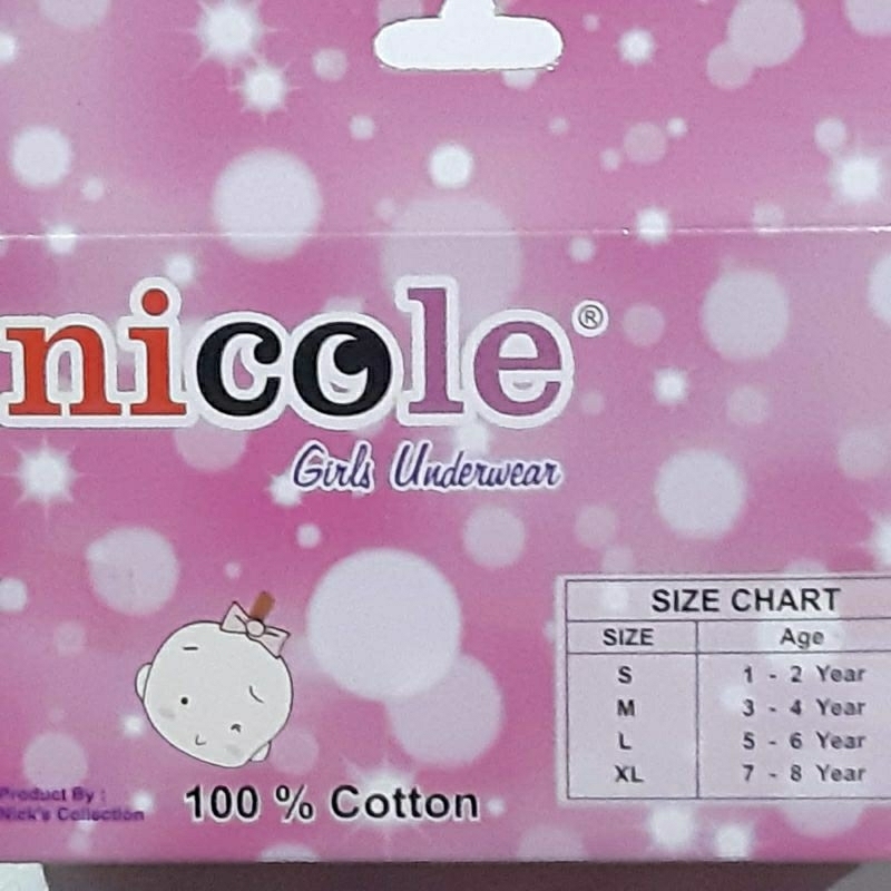 Untuk anak 1 - 8 thn Bahan katun SNI Harga untuk 1Pack Ukuran : S : 1-2 TH M : 3-4 TH L : 5-6 TH XL : 7-8 TH