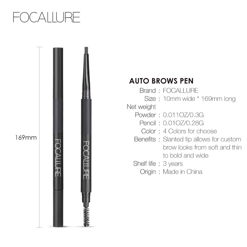 Detail NIK - FOCALLURE Auto Brows Pen 3in1 FA64 | Pensil Alis eyebrow | Pigmented | Waterproof | Tahan Lama | BPOM ORIGINAL