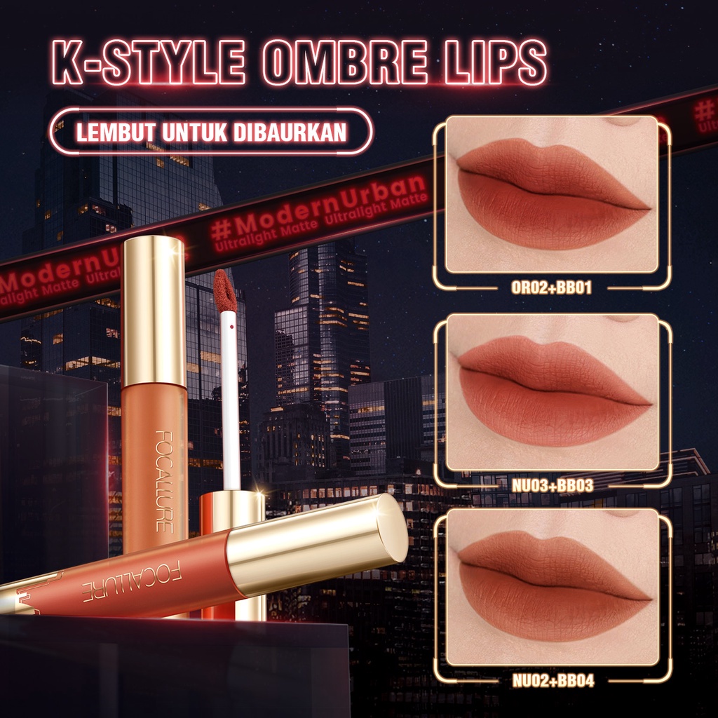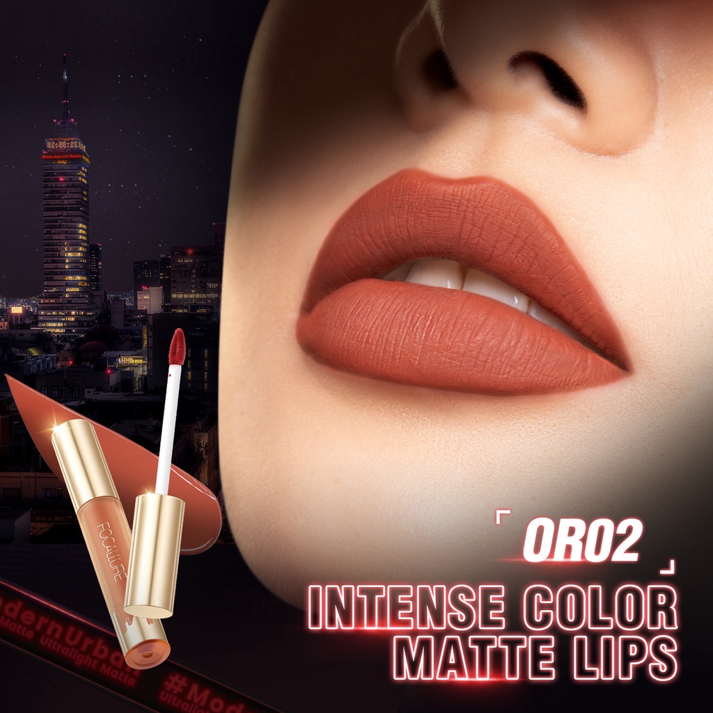 FOCALLURE #ModernUrban Ultralight High Pigment Matte Liquid Lipstick dapat memberikan warna matte yang mencolok dan membungkus bibirmu dengan tekstur yang ringan & rasa kenyamanan seperti bibir tidak menggunakan lipstick.