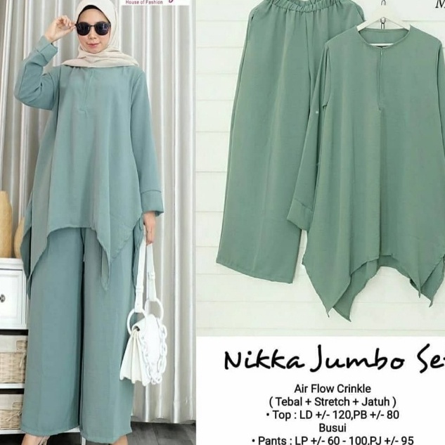 Detail NIKA ONE SET/SETELAN WANITA JUMBO KEKINIAN/SETELAN CRINKLE AIRFLOW