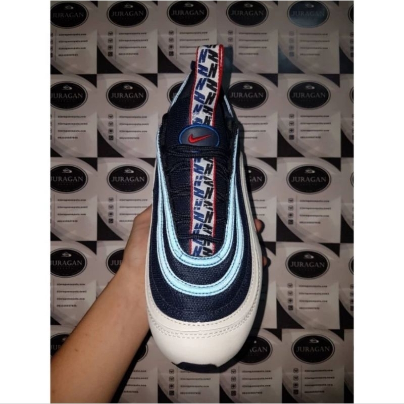 Nike Air Max 97 SE Pull Tab "Obsidian/University Red-Sail" ❗FREE TOTEBAG + KEYCHAIN + STICKER❗ Size 40-45 Rp 480.000 Complete with box Made In Vietnam PREMIUM ORIGINAL QUALITY