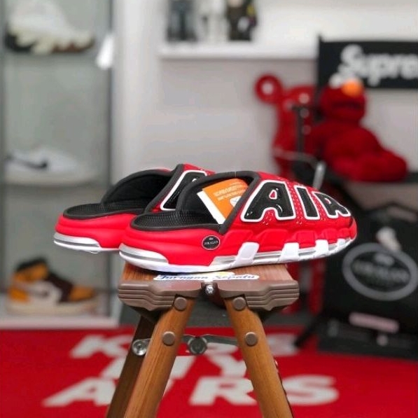 Nike Air More Uptempo Slide "Red Black" ❗FREE TOTEBAG + KEYCHAIN + STICKER❗ Size 40-45 Rp 620.000 Complete with box Made In Vietnam PREMIUM ORIGINAL QUALITY