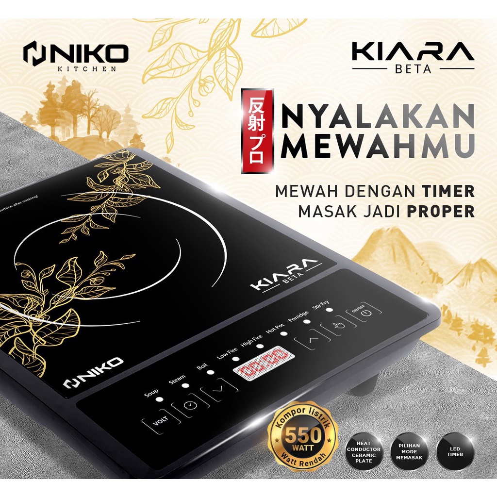 NIKO KIARA ALPHA / BETA / GAMMA : *Kompor Induksi / listrik yang sedang trend dan viral *Push button *Auto shut off *ALPHA Daya listrik 350 - 620W *BETA & GAMMA Daya listrik 400 - 650W *ALPHA & BETA Permukaan Ceramic Plate *GAMMA Permukaan Black Crystal Glass *BETA & GAMMA Dilengkapi Timer *ALPHA 5 level cooking mode *BETA & GAMMA 8 level cooking mode *ALPHA Belum Digital *BETA & GAMMA Sudah Digital