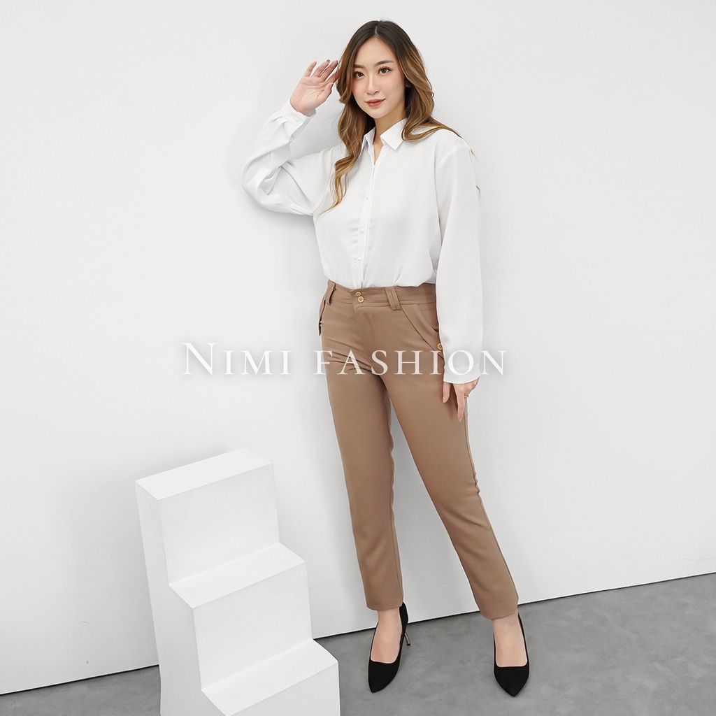 Pakaian Wanita > Celana Panjang & Legging > Celana Panjang & Legging Lainnya > NIMI - Celana Kerja Wanita Kantor Celana Bahan Formal Pingang Kancing Resleting