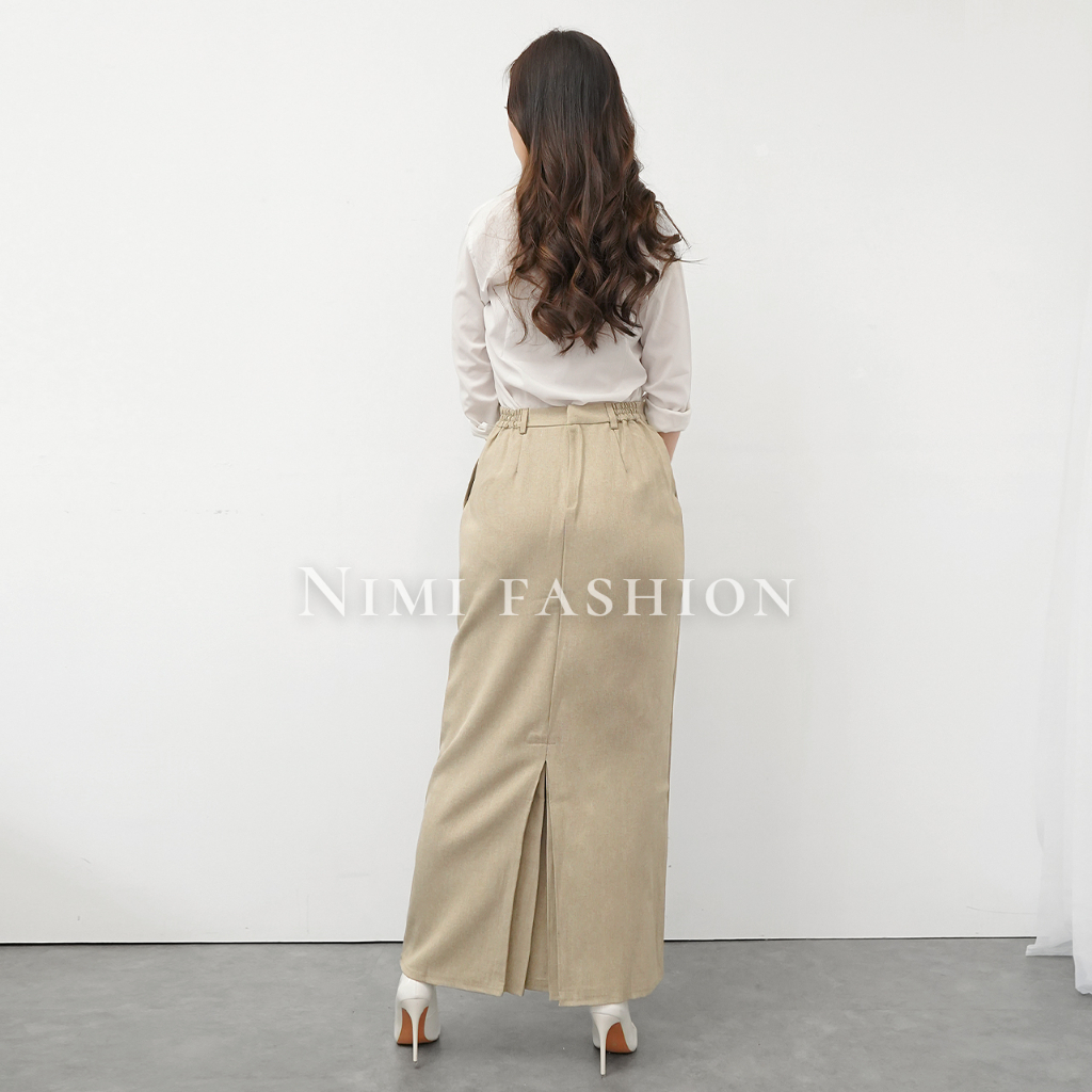Pakaian Wanita > Rok > Maxi Skirt > NIMI - Rok Span Kerja Wanita Rempel Belakang Bahan Stretch Premium Pinggang Karet Sisi Samping Kancing Kait Resleting