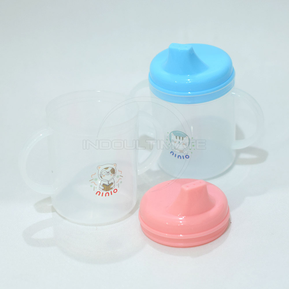 [INFO PRDUK] • Brand of NINIO • DEPH FREE & BPA FREE (Terbebas dari bahan BPAa tau bisphenol-A zat kimia sintetis) • Rekomendasi untuk bayi 6 bulan ke atas • Kapasitas 180ml • Dapat melatih bayi dari transisi antara minum menggunakan botol dot nantinya akan berganti • gelas seperti orang dewasa. • Sterilisasikan dalam air mendidih selama 5menit • Training cup NINIO mudah dibersihkan. • Sebelum penggunaan pertama, cucilah training cup ini dengan air sabun hangat, kemudian bilas. • Bisa disterilkan pada suhu air mendidih hingga 100 derajat CC • Kemasan plastik ORI dari Pabrik seperti itu