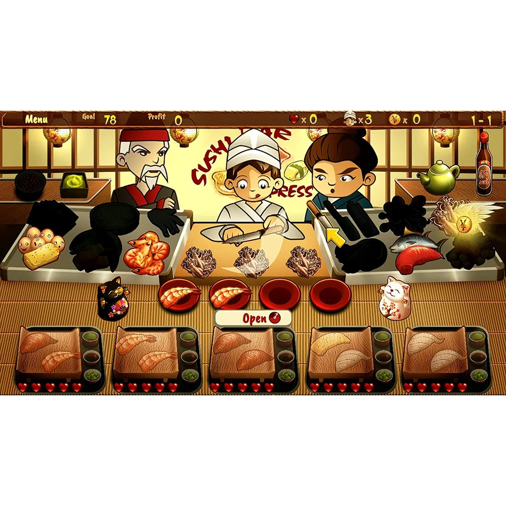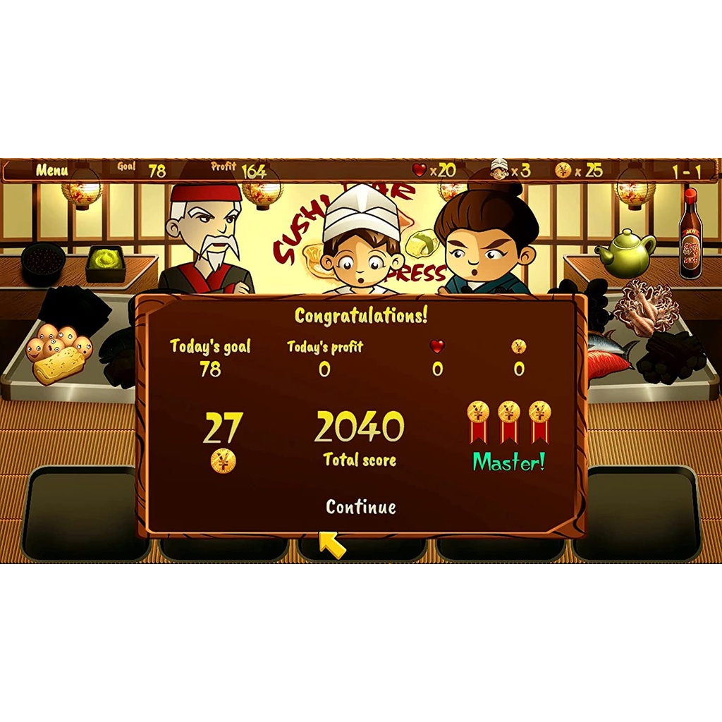 Mulailah karir sebagai koki sushi dan serap semua ajaran bijak dari tuanmu. Iris, potong dadu, gulung, dan palu sushi, lalu sajikan kepada pelanggan secepat mungkin. Buat sashimi, gulung uramaki, tuang sake, dan beri makan gerombolan lapar untuk mengumpulkan uang. Tangkap koin saat mereka terbang, dan gunakan uang yang Anda hasilkan untuk meningkatkan peralatan dan membeli lebih banyak resep.
