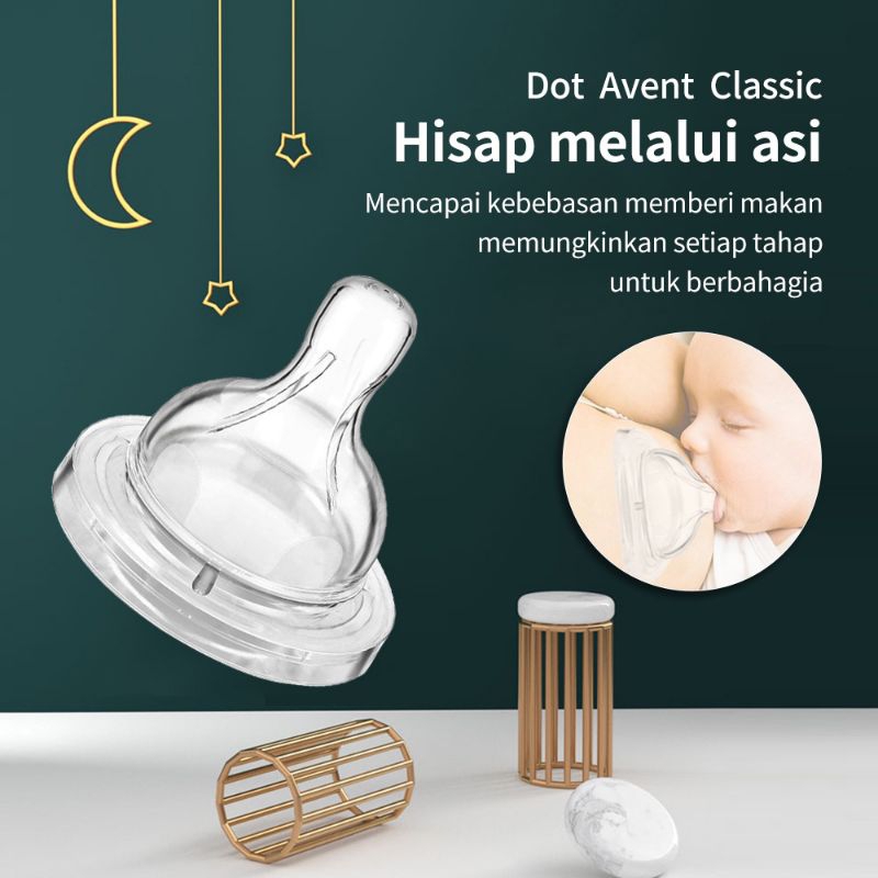 🔵Fitur: 🔸Simulation breast milk design 🔸Food grade liquid silicone material, safe without BPA/BPA, super soft to protect baby's tender mouth 🔸Air vent design, the nipple is not easy to suck flat 🔸Temperature resistance range -50℃~200℃; made of high-grade liquid silica gel, the appearance is clear and thorough 🔸Product is highly elastic and durable