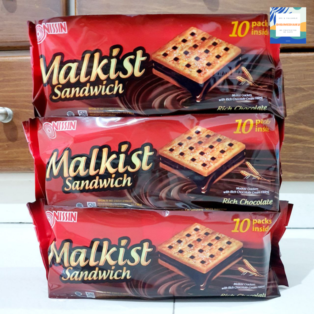Nissin malkist sandwich rich chocolate 10 x 24 gram with rich chocholate cream filling Nissin malkist sandwich rich chocolate 10 x 24 gram merupakan biskuit isi coklat, membuat biskuit ini sangat terasa nikmat saat disantap. Coklatnya yang khas membuat mulut kita ingin terus menggigitnya tiada henti. Diproses secara higienis dan dibuat oleh pabrikan ternama PT. Nissin Biscuit Indonesia , rasakan kenikmatan dan kelezatan Nissin malkist sandwich rich chocolate ini.